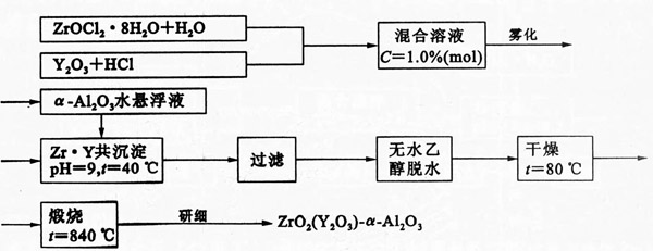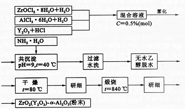 氧化鋯 (Yz 03 )-A1203粉末的制備工藝有混合法、共沉淀法和沉淀包裹法。其工藝流程